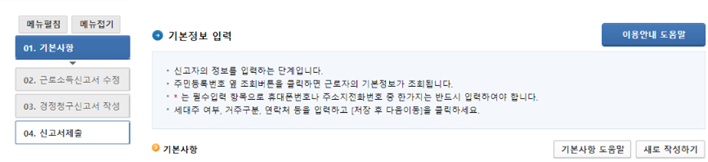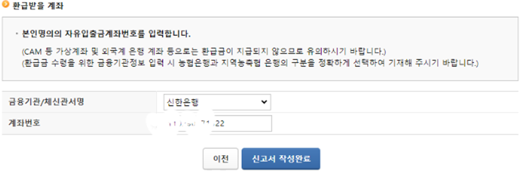 > 신고서 작성완료 → 내용을 최종 확인 → 접수증 상세내역 확인 → 증빙서류 제출까지 하면 신청이 완료된 것이고 이제 결과를 기다리면 됩니다.