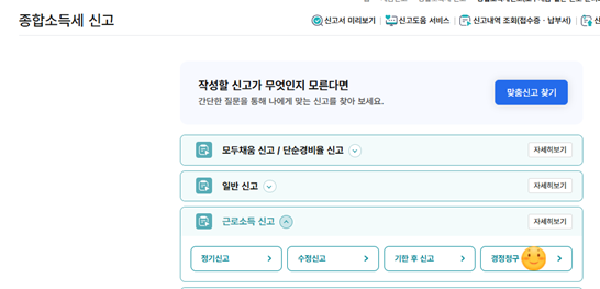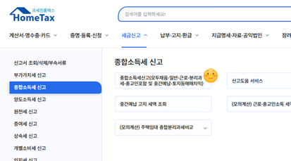 > 생소하실 수 있으나 세금신고>종합소득세 신고 메뉴로 들어가셔야 합니다.