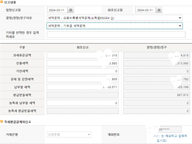 > 공제 금액만 간단히 입력하면 얼마를 환급 받을지는 자동으로 계산이 됩니다.