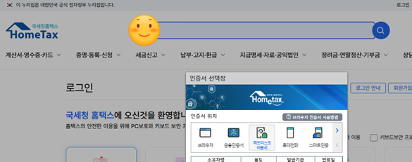 > 공인인증서로 로그인을 했습니다. (아직 인증서등록이 안되어 있는 경우 안내에 따라 간단히 등록 가능합니다.)