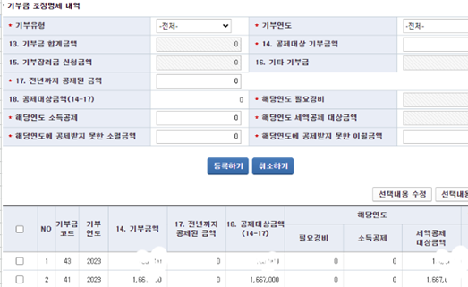 > 첫 화면 기본정보를 입력하고 나면 수정입력 화면이 나옵니다. 여기서 본인이 공제액을 추가하고 싶은 부분을 자유롭게 선택하여 금액을 수정하면 됩니다. 저는 의료비와 기부금 세액공제를 추가하기 위해 해당 항목별 "계산기"를 누른 뒤 증빙 서류의 금액을 입력 했습니다.